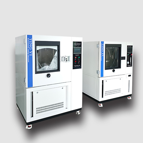 廷翌沙尘试验箱学名为“砂尘试验箱”,模拟自然界风沙气候对产品的破坏性,适用于检测产品的外壳密封性能,用于外壳防护等级标准中规定的IP5X和IP6X两个等级的试验。设备有载灰尘垂直循环的气流,试验用灰尘可以循环使用,整个风道采用进口不锈钢板制作,风道底部与锥形料斗接口连接,风机进出风口直接与风道连接,再在适当的位置上将工作室顶部扩散口接入工作室体,形成“O”型闭式垂直吹尘循环系统,使气流能顺畅地流动,大限度的使尘土分散均匀。采用单台大功率低噪音离心风机,根据试验需要用变频调速器来调节风速。